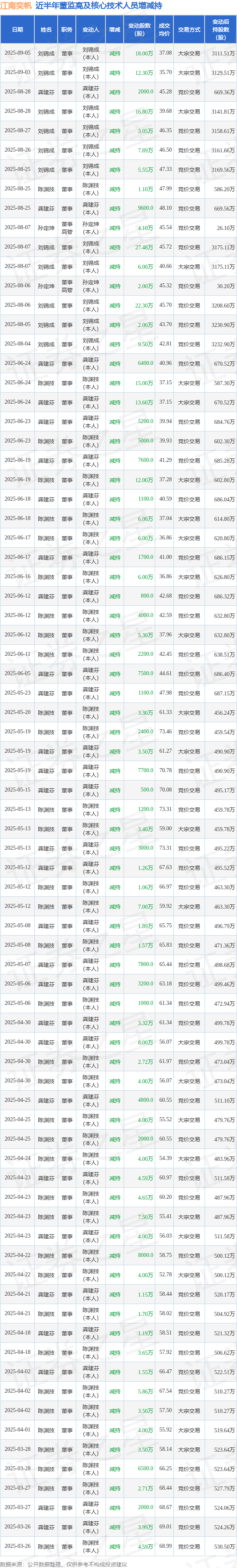 江南奕帆近半年内的董监高及核心技术人员增减持详情如下: