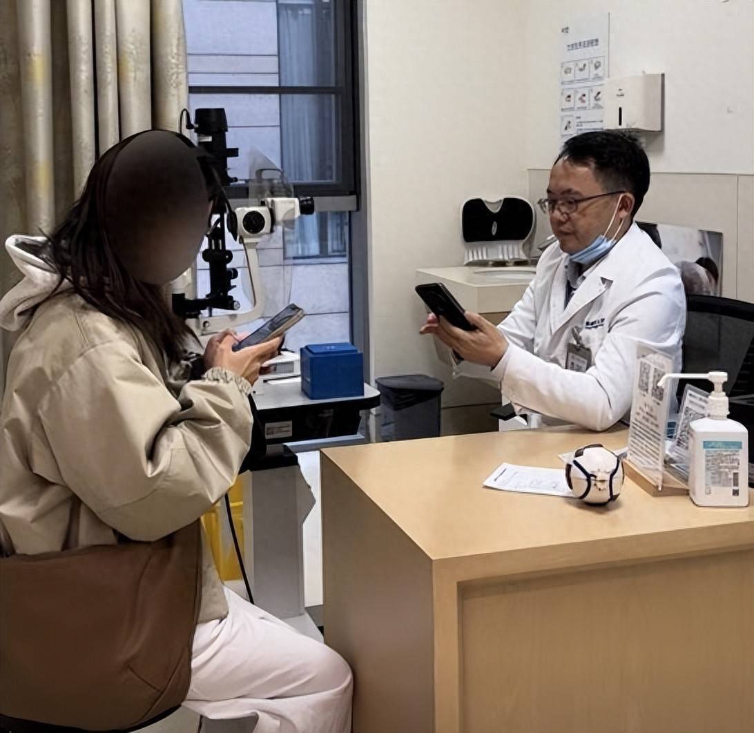 随后,陈中山主任与小杨便面对面通过微信来交流病情,询问她的眼部情况,于是,便有了诊室里这场通过手机文字传递病情、交流方案的“安静”问诊。